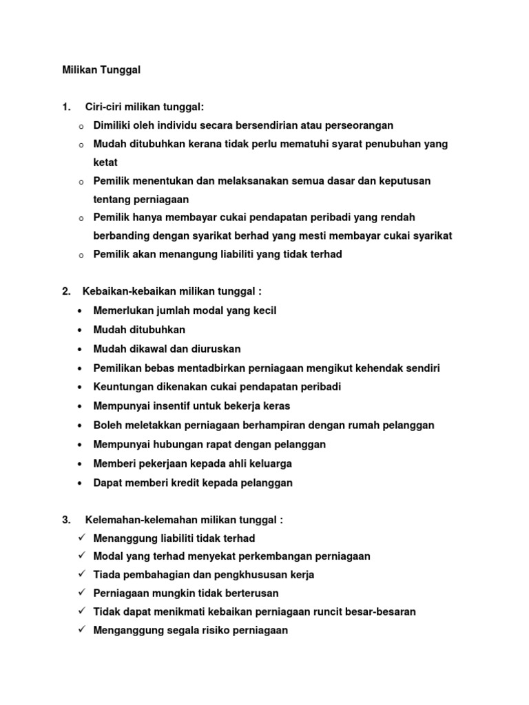 62 jenis pemilikan perniagaan a milikan tunggal dimiliki oleh seorang individu modal daripada simpanan sendiri atau. 62 jenis pemilikan perniagaan a milikan tunggal dimiliki oleh seorang individu modal daripada simpanan sendiri atau pinjaman diurus sendiri oleh pemilik. HERE are many translated example sentences containing PEMILIKAN TUNGGAL ADALAH - malay-english translations and search engine for malay translations.